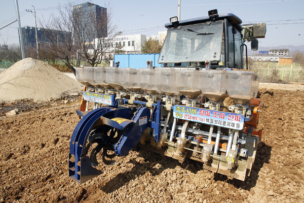본격 영농철을 앞두고 벼, 보리, 밀, 옥수수, 콩, 사료작물 등을 일정한 깊이와 간격으로 정밀하게 파종할 수 있는 신기종 '트랙터 부착형 다기능 무논 점파기'가 선보여 농업 관계자들로부터 큰 관심을 받았다.